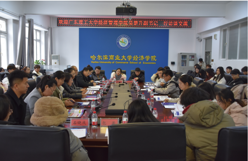 2024年11月29日下午,广州理工学院经济管理学院党总支副书记吴楚升带领学院师生一行40人来我院访学交流,学院党委书记王春华、党委副书记武皓、国际经济与贸易教研室主任张金萍、数字经济教研室主任尹龙、实践教学秘书卢尚坤、辅导员和学生代表出席访学交流会。