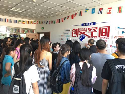 史法实经理带领学生参观俄速通孵化器创客空间