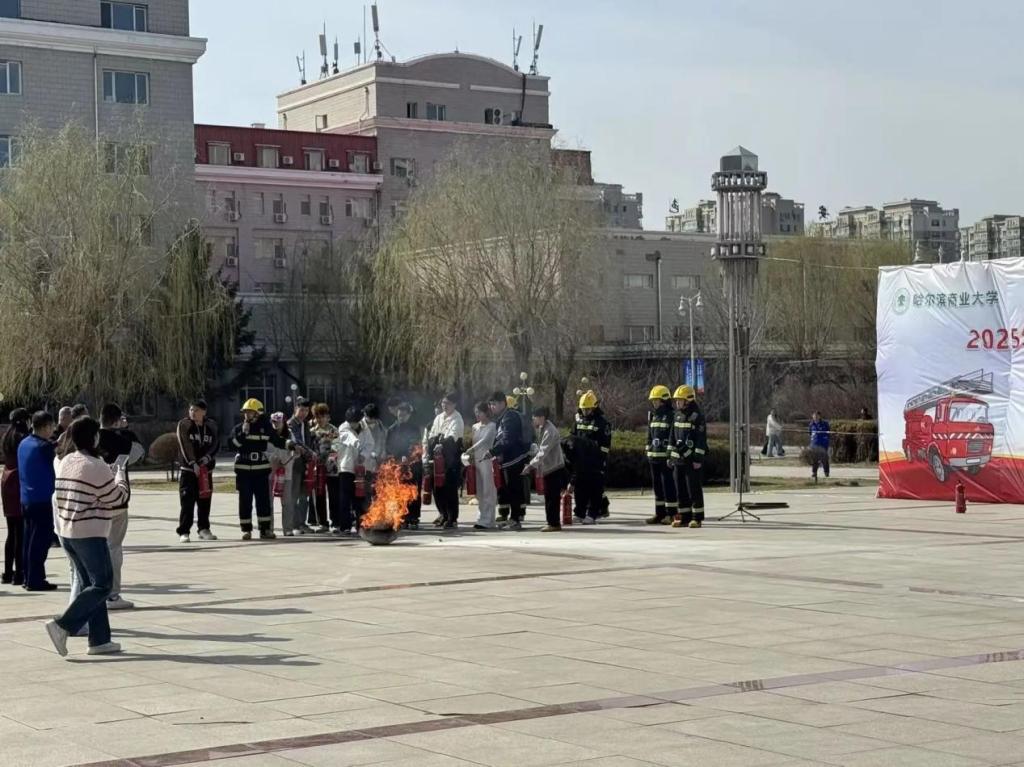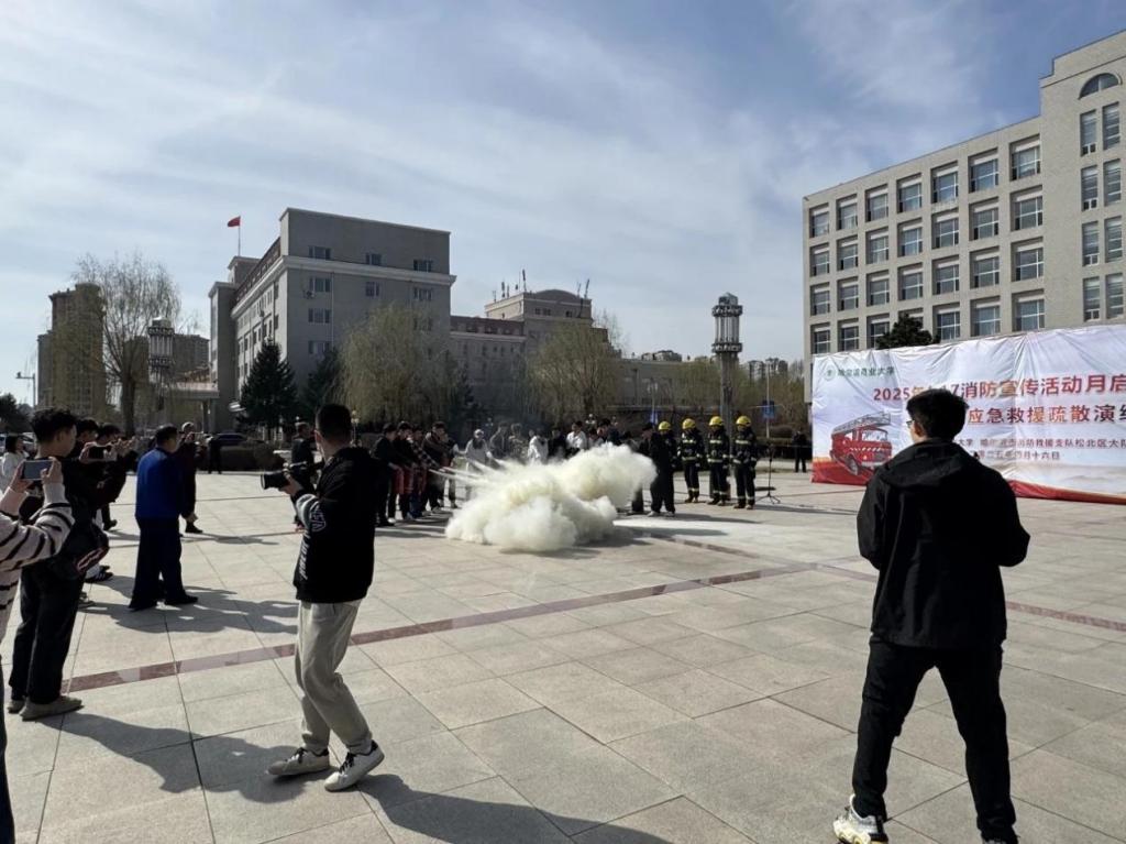 在本次演练的灭火实操环节中,哈尔滨市消防救援支队松北区大队消防员对干粉灭火器的正确使用方法进行了讲解、示范、指导,强调使用灭火器要保持镇静,牢记“一晃,二拉,三压,四喷”的要领。我院学生代表体验了实操环节,深入了解消防器材的使用方法和注意事项,掌握灭火技能,以提高自救自护能力。