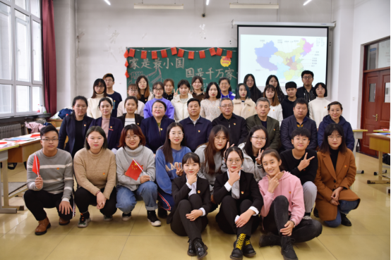 一首深情的《祖国啊,我亲爱的祖国》拉开了团活的序幕,诗人舒婷的著名诗句如温润的河流舒缓的抚过同学们心海,每个人心中的爱国主义情感被唤醒了。习近平国庆70周年庆祝大会讲话的视频播放让同学们再一次置身在庆祝大会的庄严时刻,当习主席说出“伟大的中华人民共和国万岁!伟大的中国共产党万岁!伟大的中国人民万岁!”,激动和兴奋染红了在场同学的面颊,大家踊跃的进入团活的下一个单元——聆听主席70周年庆祝大会讲话那一刻。同学们积极发言,说心中感想,说家乡变化,说立志报国,说不负盛世.......说不完道不尽的感悟和使命,让初冬荡漾起春的生机。主题团日活动的下一个单元是《新闻联播——习主席与青年的知心话》,两名主持人以新闻联播的形式串联起习主席对青年大学生的要求和期望——2013年同各界优秀青年代表座谈时的讲话、2014年在北京大学师生座谈会上的讲话、2015年致全国青联十二届全委会和全国学联二十六大的贺信、2017年给第三届中国“互联网+”大学生创新创业大赛“青年红色筑梦之旅”的大学生的回信、2019年在纪念五四运动100周年大会上的讲话,一个个同学站起来,念出来习主席与青年的知心话。“青年兴则国家兴,青年强则国家强。青年一代有理想、有本领、有担当,国家就有前途,民族就有希望。中国梦是历史的、现实的,也是未来的;是我们这一代的,更是青年一代的。广大青年要坚定理想信念,志存高远,脚踏实地,勇做时代的弄潮儿,在实现中国梦的生动实践中放飞青春梦想,在为人民利益的不懈奋斗中书写人生华章!”同学们把习主席在十九大报告中的深情寄语作为结语,明确了时代使命,感知了领袖嘱托。活泼轻快的国庆知识小问答欢乐了团活气氛,踊跃参加的同学们得到了很多小奖品。最后,师生一起合唱的《我和我的祖国》的音乐把主题团日活动推到高潮,来自五湖四海的同学们在歌曲中介绍了自己的家乡,天南海北的有志青年汇聚在经济学院,共赴这一场奋斗之约!