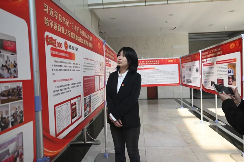 2024年3月20日正值习近平总书记“3·18”重要讲话发表五周年之际,经济学院开展“重温3·18重要讲话,以‘大思政课’培育时代新人”活动,由张春建老师带领经济学院学生党建办公室组织党员师生参观“哈尔滨商业大学思想政治理论课建设成果展。跟随展览的脚步,带领大家重温讲话精神,畅谈所思所感。
