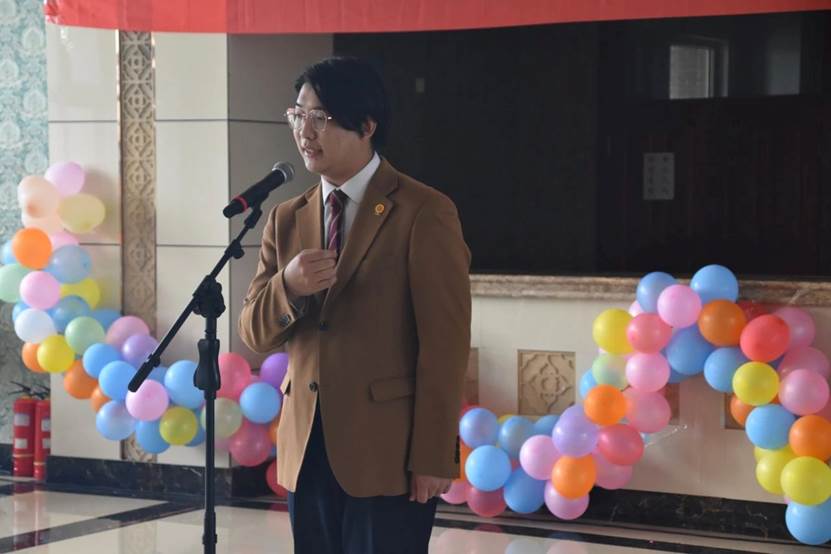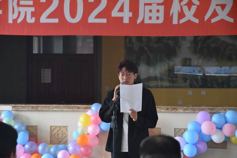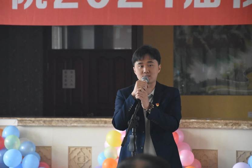 2021级在校生刘强强同学代表在校生发言,表达了对学长学姐的祝贺与祝福,并以优秀的学长学姐为榜样,勇担责任使命,用实际行动践行“求真至善,修德允能”的高贵品质。