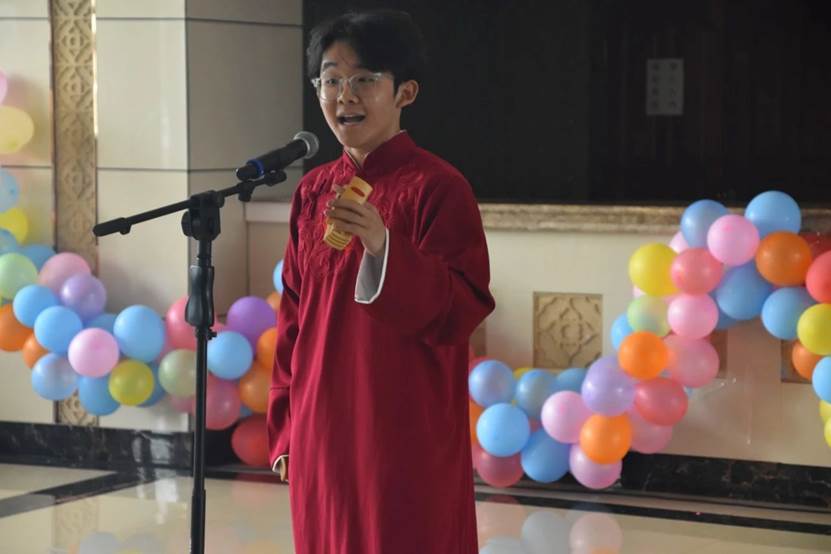 2022级和2023级祁瑞阳、张卓然、哈浩然、孔煜凯、张媛叙带来的朗诵《我们的青春》诉说了对毕业生的美好祝愿,也诉说了对青春的回忆与留念。