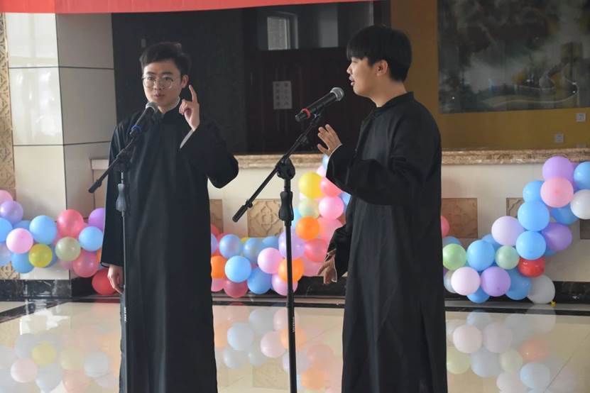 由2023级刘权圣同学为大家带来的京剧《定军山》《穆桂英挂帅》选段,由2022级蒲旭博同学和2020级毕业生刘泓澍同学带来的传统相声《八扇屏》,由2023级张富尧同学带来的快板《天安门前升国旗》等传统曲艺节目,将传统文化元素与现代相融合,将联欢会推向了高潮。