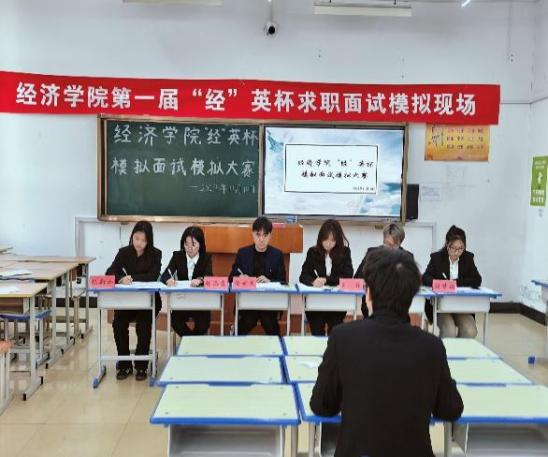 为持续深入做好大学生职业发展教育,提高学生求职能力,强化求职技能,全面提升就业竞争力,做好进入职场的充分准备。11月10日,经济学院第一届“经英杯”求职面试模拟大赛于A区主楼0201教室顺利举办。本次比赛由徐世杰老师担任主评委,经济学院就业创业服务中心主任张添意、副主任刘佳及各部部长担任副评委。