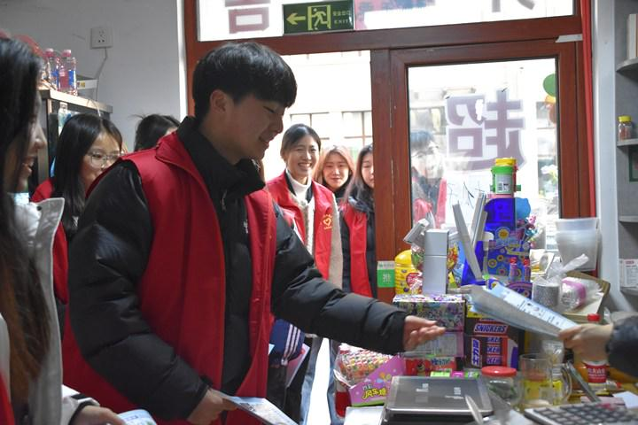 安全宣传日活动结束后,志愿者们分两组,第一组来到商店、药房花店,发放消防安全知识宣传单,并进行知识讲解然后又帮助社区工作人员对居民楼里的消防通道进行检查与登记,以确保消防通道畅通第二组与社区工作人员一起来到社区沿街商户发放垃圾分类知识宣传单,讲述垃圾分类的分类标准重要性