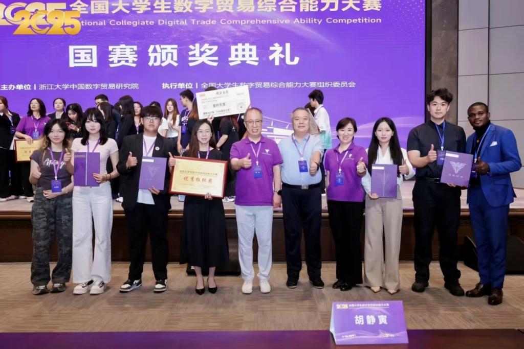 金秋送爽,捷报频传。9月26日至28日,第四届全国大学生数字贸易综合能力大赛全国总决赛在浙江大学隆重举行。我院杨慧瀛副院长与吴英艳老师率领四支劲旅出征,与全国精英学子同台竞技。经过激烈角逐,我院四支队伍凭借卓越表现,一举斩获全国二等奖两项、全国三等奖两项,成功刷新我院在该项赛事中的历史最好成绩!同时,我校凭借出色的组织工作荣获“最佳组织奖”,再添荣光。