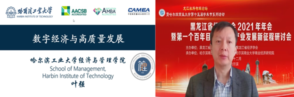 主旨演讲下半程主题为“助力龙江经济发展 开启龙江产业发展新征程”,由副会长张启文教授主持。叶强教授作题为《数字经济与高质量发展》主旨演讲,他详细论述了数字技术对商业模式、产品技术、决策模式、思维模式的创新产生的深远影响,指出龙江推动数字经济发展存在的优势和问题,为我省数字经济发展提供了明晰的思路。