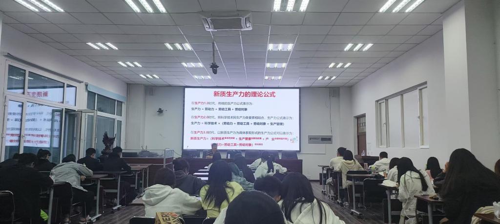 5月20日18:00,经济学院在1102会议室成功举办了一场主题为“培育新质生产力 赋能龙江冰雪旅游产业高质量发展”的讲座。本次讲座由经济学院主办,经济学院副院长蒋抒博教授作为主讲人,英才学院两个年级、近80名本科生参加讲座。讲座围绕新质生产力的概念、特征及其在冰雪旅游产业中的应用进行了深入探讨。蒋抒博教授首先阐释了新质生产力的定义,指出它是以创新为主导,具有高科技、高效能、高质量特征的先进生产力质态。他强调,新质生产力的产生背景与第四次产业革命的到来紧密相关,包括人工智能、核聚变能源、基因编辑等技术的发展,以及国际地缘政治格局的变化和国内经济发展面临的挑战。