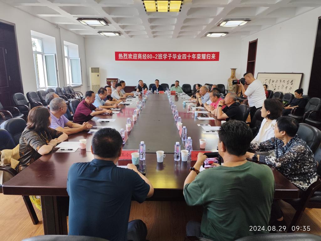 8月29日上午,在南校区教学主楼二楼会议室举行了“商经802班优秀校友毕业四十周年荣耀归来座谈会”。座谈会由校就业创业指导中心主任潘俊峰主持,副校长赵大伟、经济学院院长韩平、副院长韩朝亮,蒋孝洪(原经济学院党委书记)、王永发(原学工部部长)、张劲松(会计学院院长)、刘晓峰(原科研处处长)参加此次座谈。