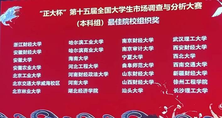 5 月 26 日,第十五届 “正大杯” 全国大学生市场调查与分析大赛(本科组)总决赛在浙江财经大学圆满落幕。作为纳入教育部高校学科竞赛排行榜、在统计学、经济学、市场营销等领域极具影响力的全国性高水平赛事,本届大赛汇聚了全国众多高校的优秀团队同台竞技。哈尔滨商业大学经济学院学子凭借扎实的专业功底、创新的调研思路与出色的团队协作,在激烈角逐中脱颖而出,最终斩获全国总决赛一等奖 2 项、三等奖 6 项,并助力学校荣获 “最佳本科组院校组织奖”,实现了学校在该赛事本科生组成绩的历史性突破,为校争光、为院添彩!